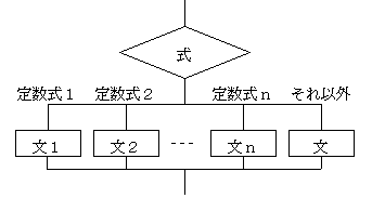 定数式n と等しければ、文n 実行