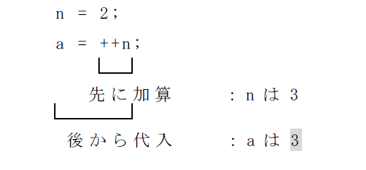 a = 3;                         // インクリメント演算子(前置演算)の例